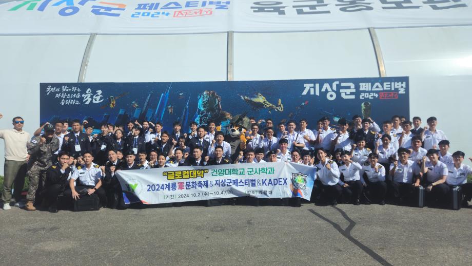 2024학년도 군사학과 3·4학년 지상군페스티벌 및 계룡군문화축제, KADEX(대한민국 국제방위산업전시회) 참가 - 참가일자 : 2024.10.04(금) - 참가대상 : 군사학과 및 학군단 3·4학년 - 인 솔 자 : 군사학과 신치범 교수, 학군단장, 윤화준 교수, 정해성 교관, 인재선발관