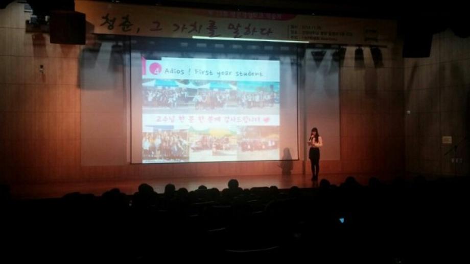 2014년 11월 29일 토요일에 있었던 학술제의 사진들입니다. 이제는 추억이 된 2014학년도 학술제를 다시금 사진으로 볼 수 있는 계기가 되었으면 좋겠습니다. 학술제가 빛날 수 있도록 준비해주신 모든 분들께 감사합니다. < 1학년의 동기유발학기 발표 >