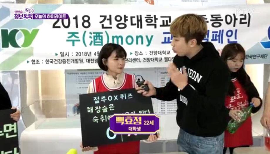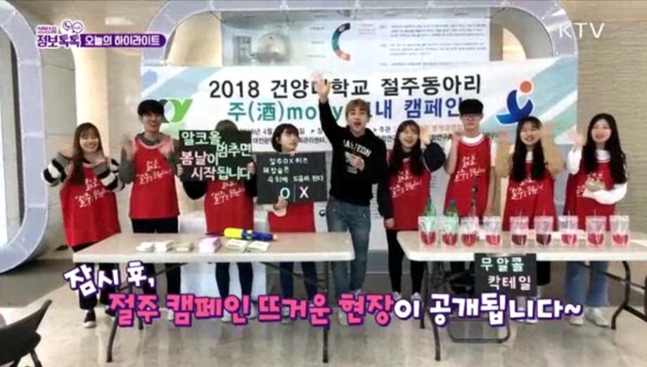 2018년 4월 2일, 건양대학교 죽헌정보관 로비에서 절주동아리(酒money) 교내캠페인을 진행하였습니다. 병원경영학과가 주관(지도교수 김광환)하였으며 많은 병원경영학과 학생들이 참여해주셨습니다. KTV(국민방송) 프로그램 '생방송 정보 톡톡'에서 "대학가 음주사고 '이제 그만'"이라는 주제로 방영되었습니다!