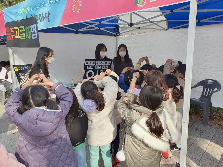 건양대학교 병원경영학과 절주동아리 주(酒)mony가 11월 9일 대전 서구청이 주관해 보라매공원에서 개최된 '대학생 행복나눔봉사단과 함께하는 어울림 한마당'에 참여해 건강캠페인을 펼쳤다.