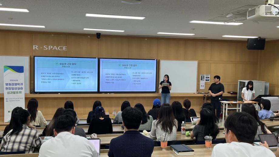 9월 24일(화) 2024년 하계방학 현장임상실습 운영을 통해 재학생의 실습 결과를 공유하는 성과발표회가 진행되었습니다. 부서별 실습내용 발표 및 실습 후의 느낀점을 서로 공유하는 의미있는 자리였습니다. (의무기록팀, 행정A팀, 행정B팀, 원무팀)