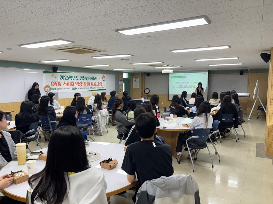<2025학년도 임상병리학과 DYW 스피치 역량 강화 프로그램> ▶ 일시 : 2025.05.01 (목) ▶ 참여인원 : 50명 ▶ 운영내용 - 자신감 있는 스피치 능력 향상을 통한 임상 현장 내 효과적 의사소통 역량 강화 - 발표력, 표현력, 협업 능력을 동시에 키울 수 있는 실전형 프로그램 운용 |