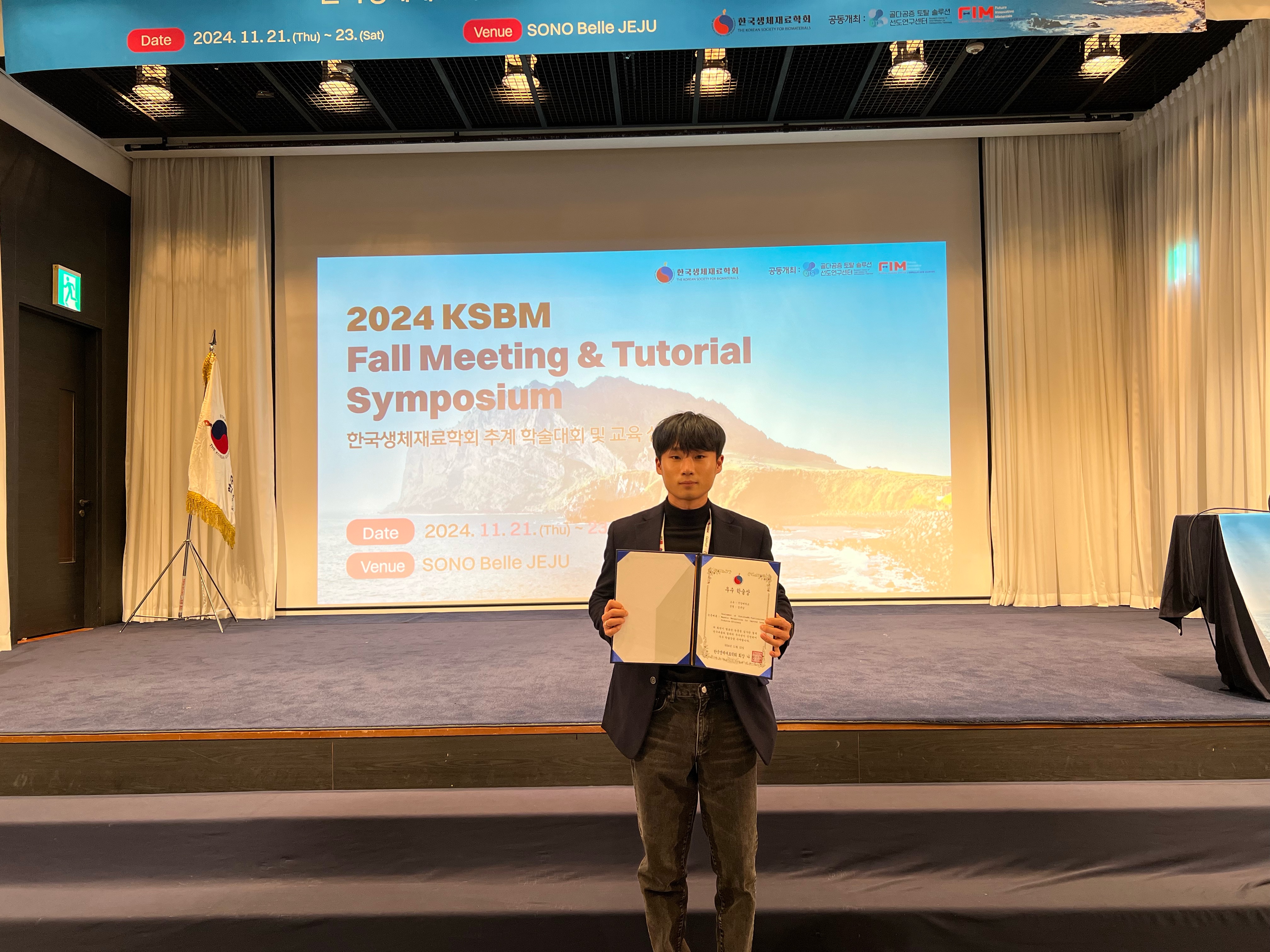 KSBM Fall Meeting & Tutorial Symposium 한국생체재료학회 추계 학술대회 및 교육 심포지엄 의료신소재학과 김규남 학생 Student Oral Competition (SOC) 우수상 수상 11.21~11.23(제주)
