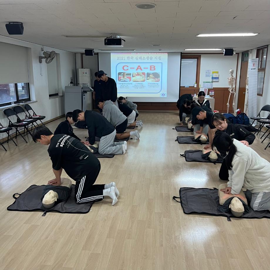 [스포츠의학과 응급처치 자격과정] 2024학년도 11월 12일에 건강운동관리사 자격과정에 필수적 요소이며, 각 체육기관 취업에 반드시 필수적인 자격과정으로 응급처치 자격과정을 수료한 15명의 학우 모두 응급처치 수료증(자격증)을 취득하였습니다. |