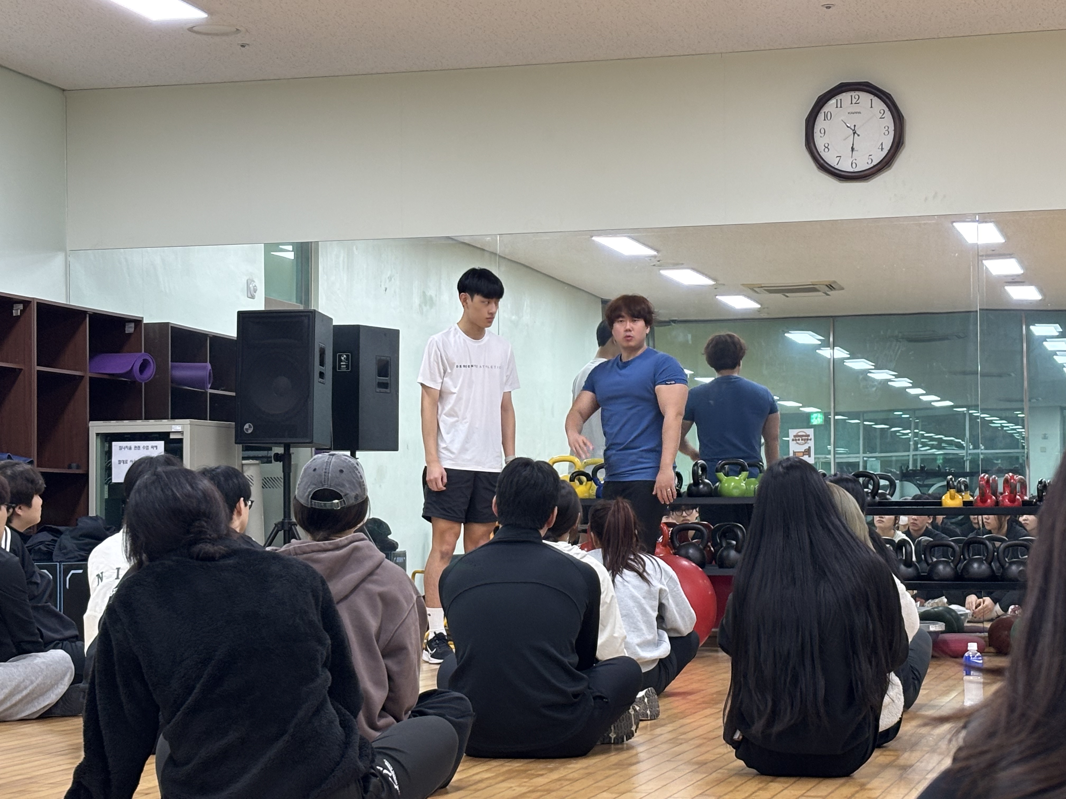 안녕하세요 건양대학교 스포츠의학과 학생회입니다! 2025학년도 11월 13일(목), W휘트니스에서 근무 중이신 박정혁 센터장님을 모시고 전문가 특강을 진행하였습니다. 이번 특강에서는 스포츠의학과 학우들의 하체강화를 주제로, 트레이닝 지도 방법과 다양한 실전 운동들을 직접 시연해 주셨습니다. 특강을 통해 하체 근력의 기능적 역할, 올바른 동작의 기준, 그리고 현장에서 바로 활용할 수 있는 지도 방법을 깊이 있게 배울 수 있었습니다. 또한 하체 트레이닝에 대한 시각을 넓히는 데 큰 도움이 되었고, 움직임 분석을 바탕으로 운동을 단계별로 적용하는 방법도 배울 수 있었습니다. 유익한 강의를 해주신 박정혁 센터장님께 진심으로 감사드립니다!!!