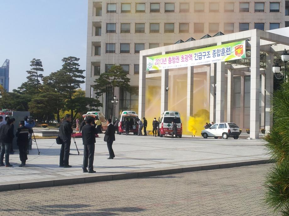 2013년 10월 31일 대전 정부청사에서 실시된 긴급구조 종합훈련 견학 및 심폐소생술 시연을 하였다. |