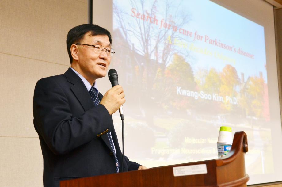건양대학교(총장 김희수)가 4일 오후 건양대병원 암센터 5층 강당에서 신경생물학과 줄기세포 분야의 세계적인 권위자인 하버드의대 김광수 교수를 초청해 ‘파킨스병의 최신 연구성과(Search for a cure Pakinson's disease)' 주제로 특강을 진행했다.