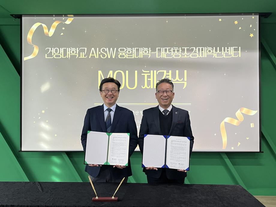 먼저 건양대학교 AI·SW융합대학(학장 겸 SW중심대학사업단장 김용석)은 (재)대전창조경제혁신센터(대표이사 박대희)와 AI 기반 창업 활성화 모델 구축 및 지역 창업 생태계 고도화를 위한 업무협약(MOU)을 체결했다. 이번 협약은 대전·충남 지역 창업 생태계의 혁신적 성장을 목표로 양 기관이 보유한 교육·연구·창업지원 역량을 결합하여 실질적인 성과를 창출하는 데 중점을 두었다.