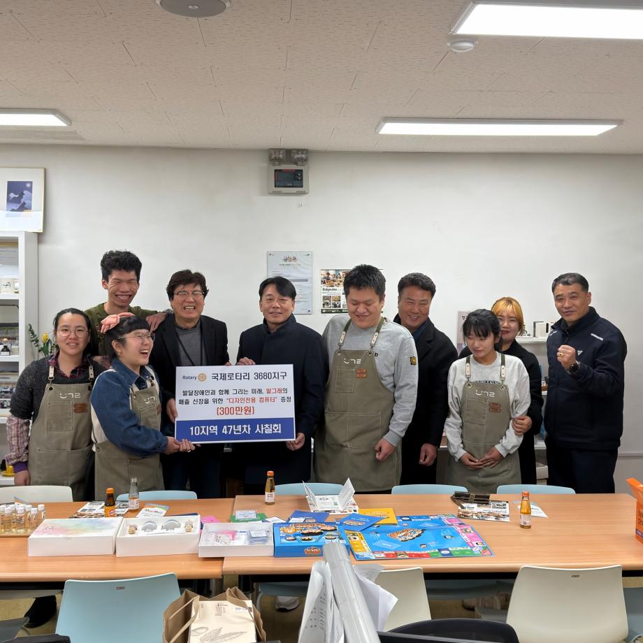 국제로타리 3680지구 10지역 사칠회(대표 백남희)는 47년간 봉사해온 경험을 바탕으로 고성능 디자인 컴퓨터를 쾌척하며, 발그래일터 근로자들이 더욱 나은 환경에서 일할 수 있도록 지원했다.