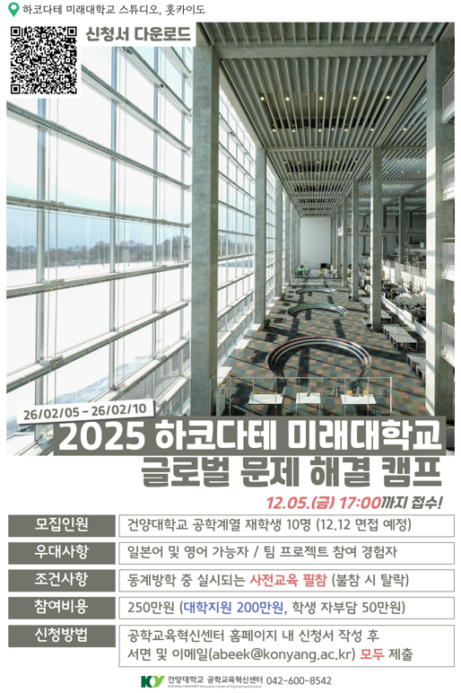 | 제목 | 2025 건양대학교-일본하코다테미래대학교 글로벌 교류 프로그램 모집 안내 | ||||||||||||||||||||||||||||||||||||